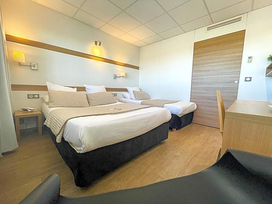 This twin/double room has a flat-screen TV, tea/coffee maker and soundproofing, facing a quiet parking. Possibility to get a twin room with an extra of 10 € per night per room.